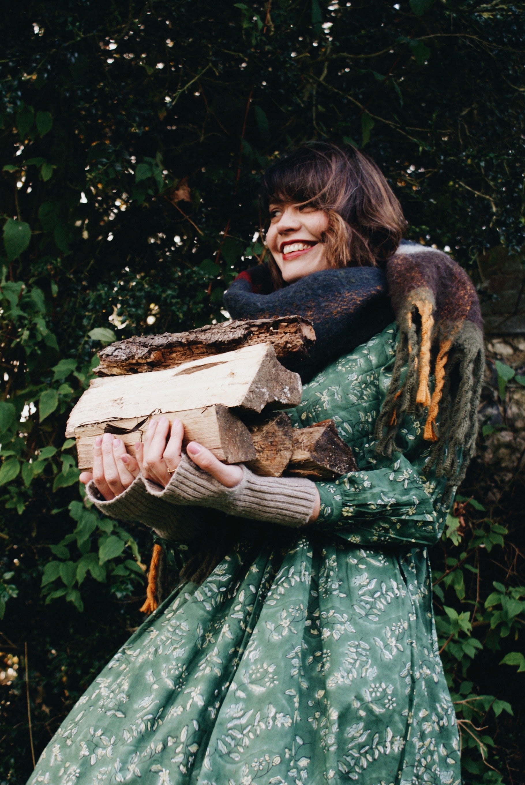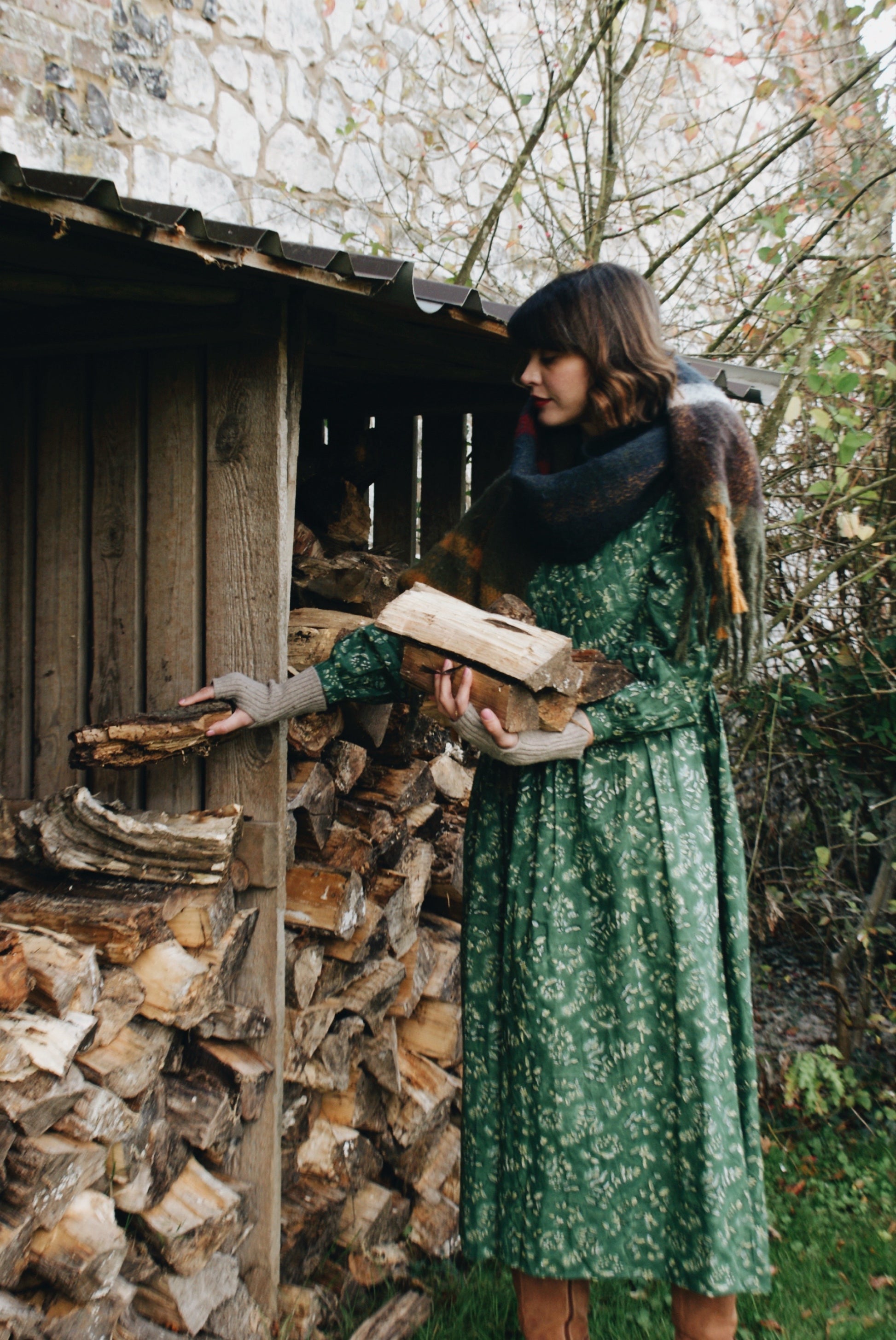 Wear for foraging around the countryside (the quilted yolke always keeping us warm) with flowing skirt making it easy for afternoon walks. And then dress it up in the evening with heeled boots, big earrings and a gilet.